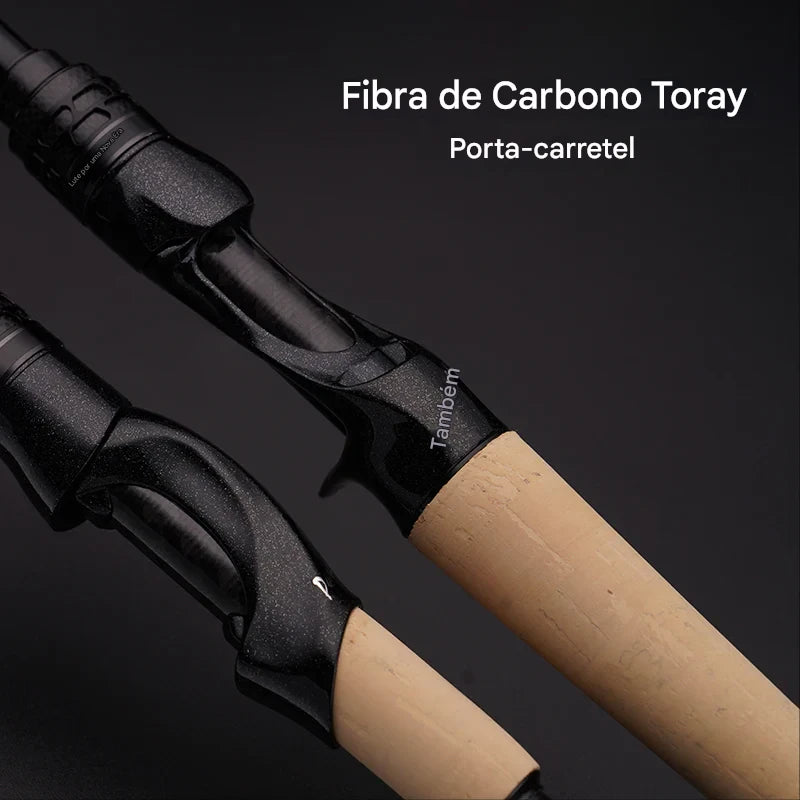 Linha premium em carbono: alto módulo para máxima sensibilidade e ação rápida.